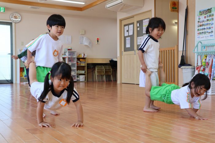 歌や踊りなどのリズム表現を取り入れた、のりのりでパワフルな保育です。
