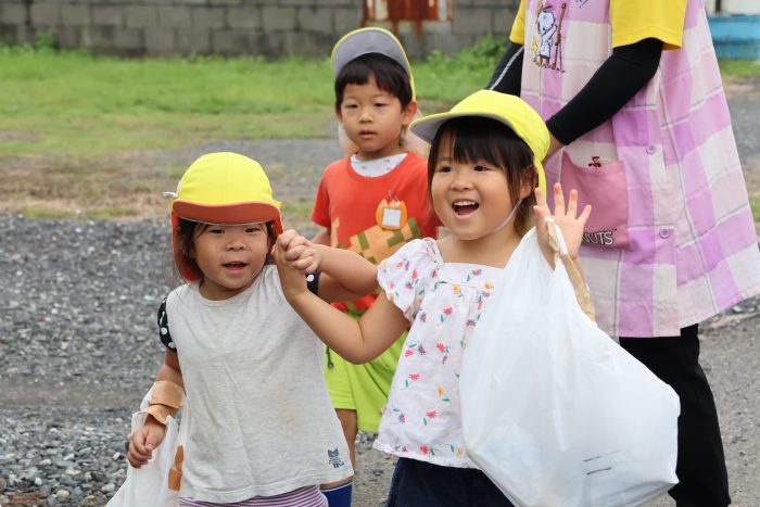 道を歩きながらのチリ拾いです。「ゴミはゴミ箱に捨てる」ということを改めて学ぶとともに、地域の美化に努めることで、自分の住む地域に対する愛着を育みます。拾ったゴミは持ち帰らせております。ボランティアでの頑張りを、大きく褒めてあげてください。